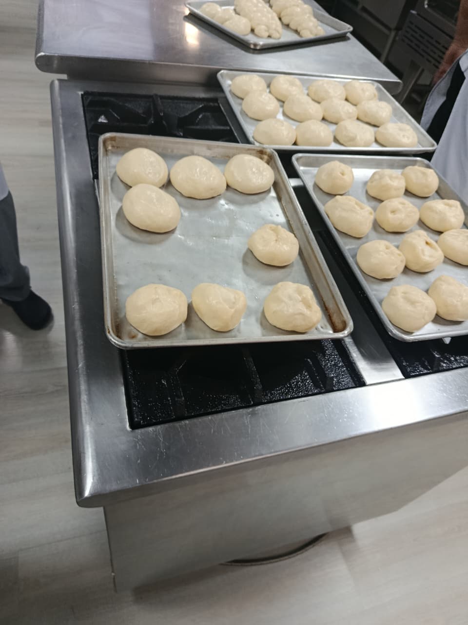 Amasar con el método del cráter de harina, y añadiendo en orden que se dictaron en la lista